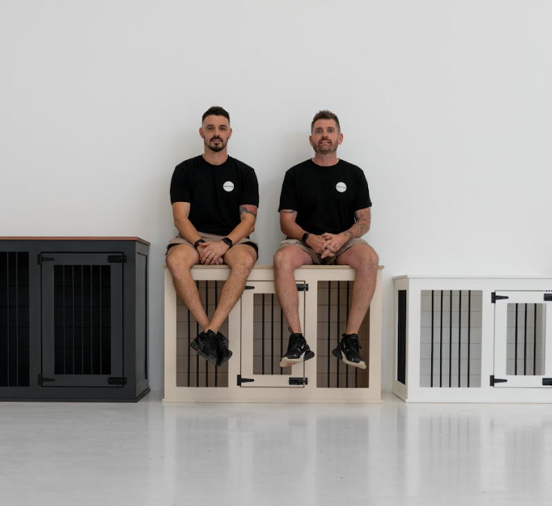 Kustom Kennels started with two mates who’d already been working side-by-side for a few years and always wanted to build something of their own. When we both brought new dogs home, every trainer we spoke to recommended crate training—for toilet training, safety, and a calm routine at home. The problem? We couldn’t stand the look of wire cages in the middle of a living room.